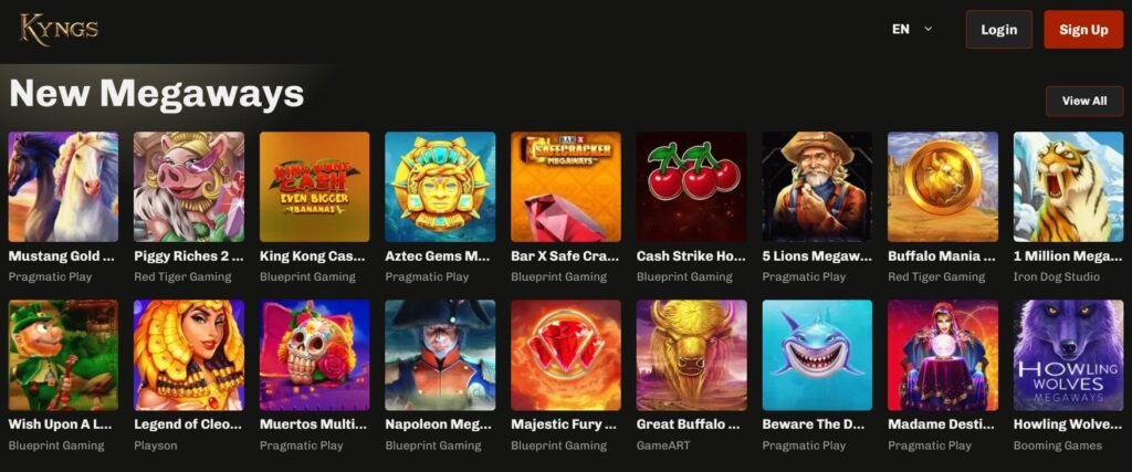 Kyngs Casino se distingue por su impresionante variedad de juegos que atraen tanto a aficionados de las tragamonedas como a los amantes de los juegos de mesa clásicos o el emocionante casino en vivo. La plataforma alberga más de 4,000 títulos, asegurando que cada jugador encuentre opciones adaptadas a sus preferencias y nivel de experiencia.