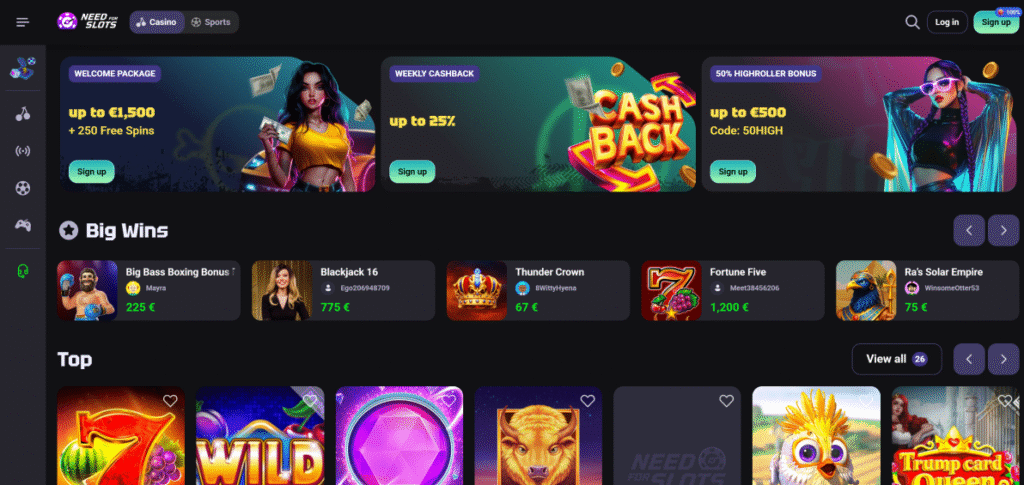 Muchos consideran los bonos sin depósito una excelente oportunidad para explorar un casino sin arriesgar fondos propios. Aunque algunos portales sí ofrecen este tipo de incentivos junto con tiradas gratuitas, en Need for Slots esta posibilidad no está disponible actualmente. El usuario puede acceder únicamente a las funciones básicas tras crear una cuenta, sin recibir recursos extra por ello.